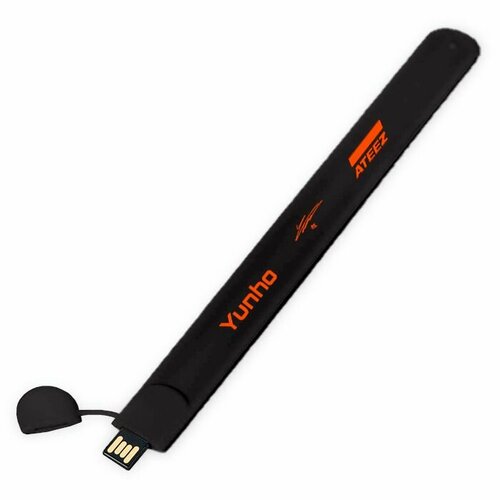 Слеп флешка-браслет с надписью "ATEEZ. Yunho. K-pop, к-рор", 16 Gb, цвет черный.