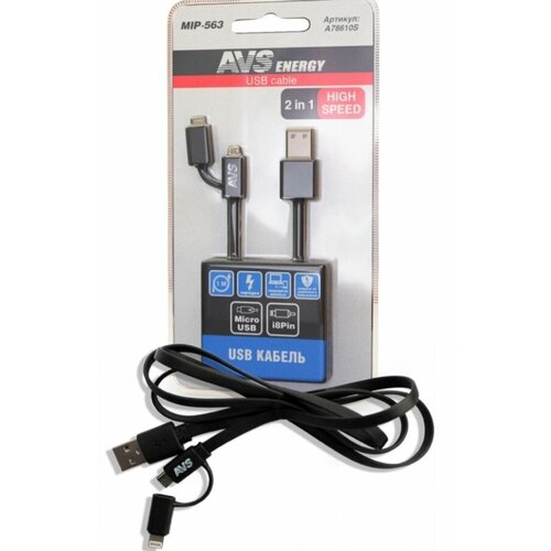 Кабель avs для iphone 5 6 7 micro usb(1м) mip 563 (блистер) avs арт. a78610s