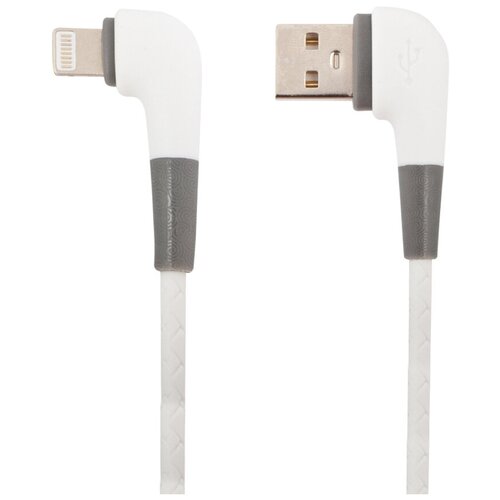 USB кабель "LP" для Apple Lightning 8-pin L-коннектор "Кожаный шнурок" (белый/коробка)