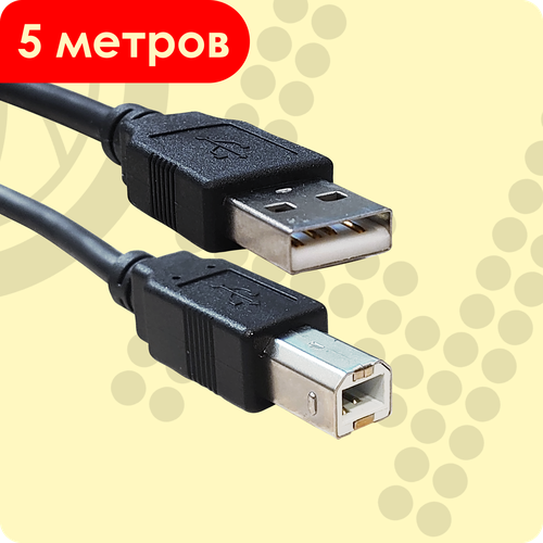 Соединительный кабель USB 2.0 для передачи данных USB-A (папа) - USB-B (папа), 5 метра | Perfeo U4104 - 1шт