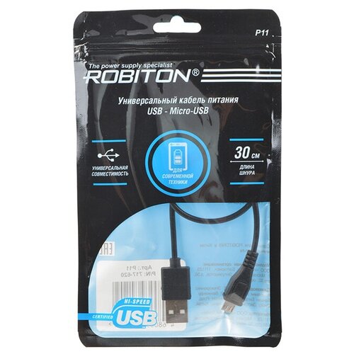 Кабель USB ROBITON P11 USB A - Micro-USB, 0,3м PH1, 1шт
