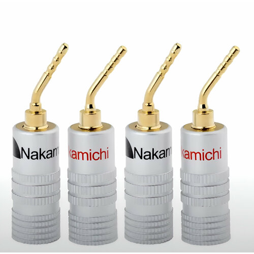 Штекер на акустический кабель 1,9 мм тип банан игла, металл, позолоченный, винт перо, 4 штуки в комплекте