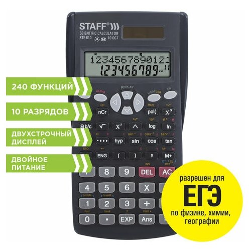 Калькулятор инженерный двухстрочный STAFF STF-810 (181х85 мм), комплект 3 шт, 240 функций, 10+2 разрядов, двойное питание, 250280