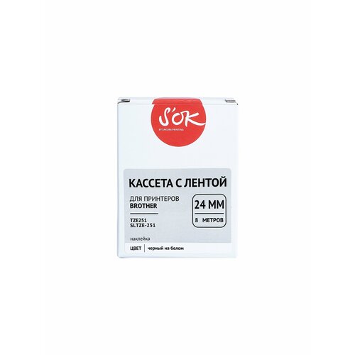 Кассета с лентой S'OK by Sakura Printing TZE251 для Brother, черный на белом, 24мм/8м, наклейка