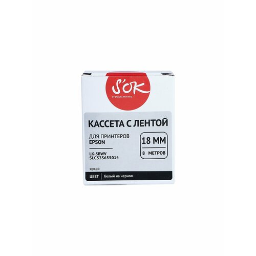 Кассета с лентой S'OK by Sakura Printing C53S655012 (LK5WBW) для Epson, черный на белом, 18мм/8м, повышенная клейкость