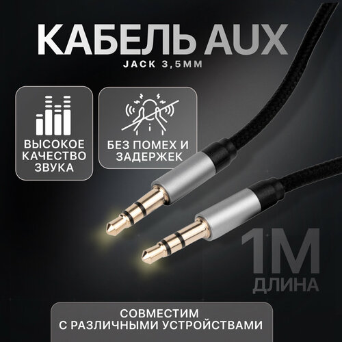 Аудио кабель AUX 3,5mm jack - 3,5mm jack / 1m серебристо-черный