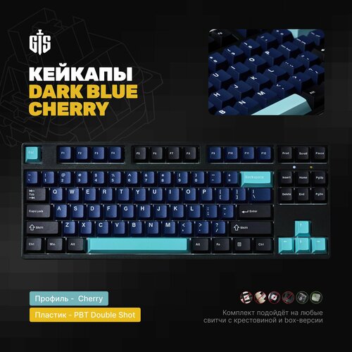 Кейкапы Dark Blue Cherry для механической клавиатуры, профиль Cherry, PBT Double-Shot пластик