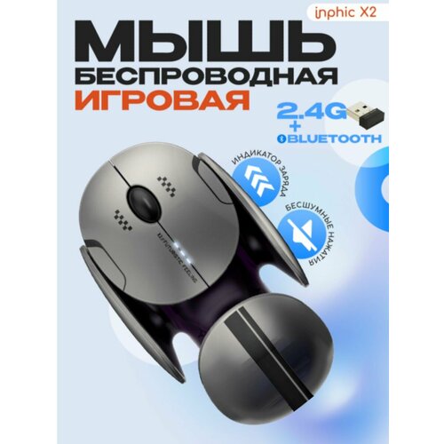 Беспроводная мышь Inphic X2 2,4 ГГц, бесшумная перезаряжаемая металлическая игровая мышь в стиле научной фантастики