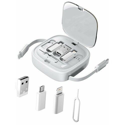 Кабель рулетка USB-C 60 Вт + переходники адаптеры 8 в 1 дорожный набор