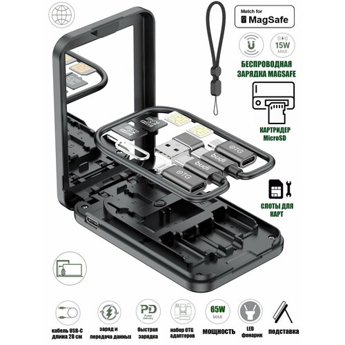 Картридер с кабелем USB-C 65 Вт и органайзер MicroSD карт + адаптер USB-A + скрепка для Sim