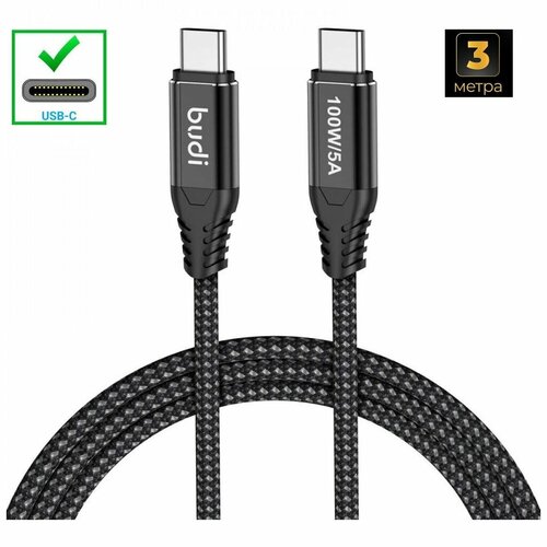 Кабель 3 м USB-C для быстрой зарядки Power Delivery и передачи данных, 100Вт, 5А
