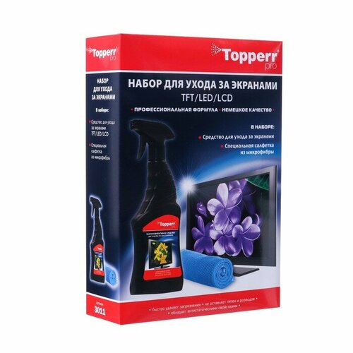 Набор Topperr для ухода за экранами ЖК, LCD и плазмы ср-во+салфетка (комплект из 2 шт)