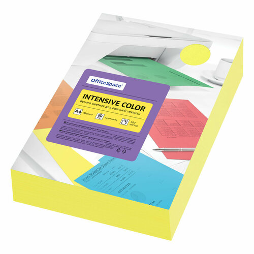 Бумага цветная OfficeSpace "Intensive Color", А4, 80г/м², 500л, (желтый)