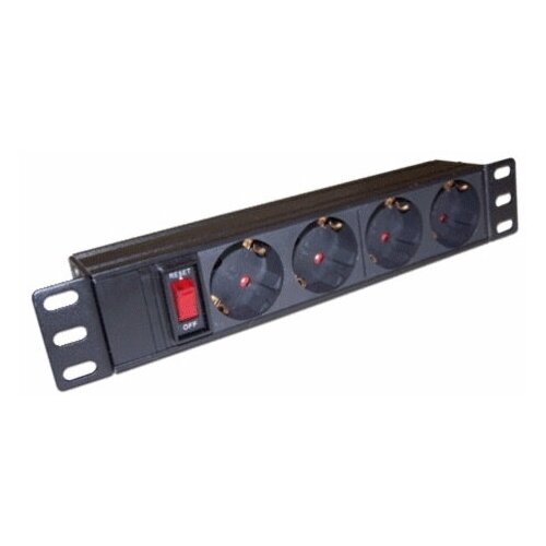 Блок розеток 10", 1-фазный с выключателем, 10A / 250V, 4xSchuko, без шнура питания, разъем C14