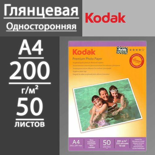 Фотобумага Kodak глянцевая 200 г, А4, 50 листов