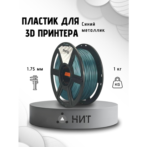 Пластик для 3D печати "НИТ", Petg синий металлик (0038) 1 кг, диаметр 1,75 мм