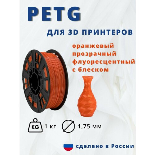 Пластик для 3д печати "НИТ", Petg оранжевый прозрачный флуоресцентный с блеском (0028) 1кг