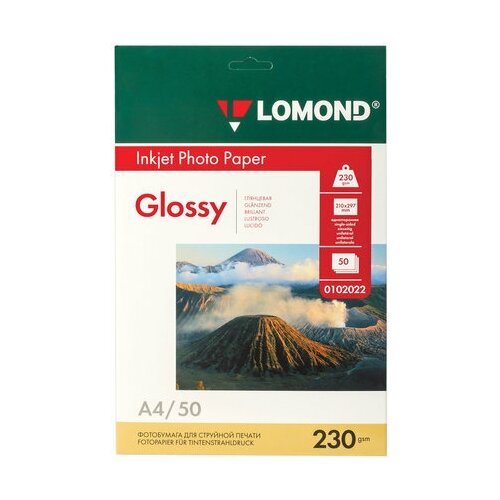Фотобумага А4, комплект 10 шт, 230 г/м2, 50 листов, односторонняя, глянцевая, LOMOND, 0102022