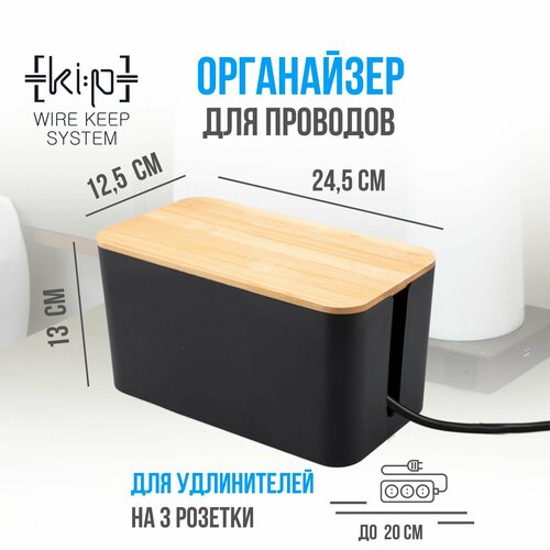Коробка органайзер для проводов малый (23,5х11,5х12) бамбуковая крышка, короб для маскировки сетевых кабелей и шнуров для зарядки