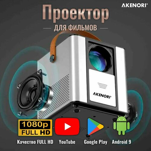 Проектор для фильмов Akenori LED-ZX74K на Android + Wi-FI серебристый