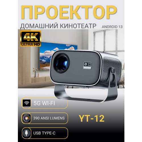Проектор для фильмов Умный 5G 2024, FULL HD 4K, Встроенные динамики, Wi-Fi Bluetooth черный, черный