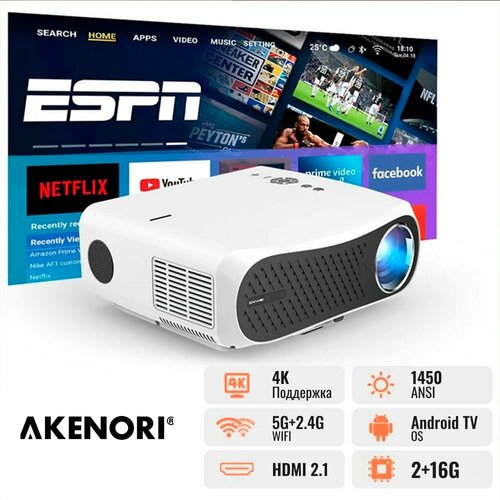 Проектор для фильмов Умный 5G , FULL HD 4K, Встроенные динамики, Wi-Fi Bluetooth