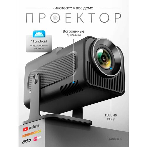 Проектор Full HD Android TV, Портативный проектор 5G, HDMI, Проектор мультимедийный Wi-Fi 1080p для дома, дачи, офиса, Cерый
