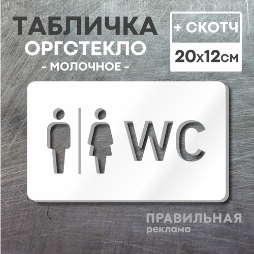 Табличка на туалет со скотчем, 20х12 см. 1 шт. / Табличка туалет, WC (молочное оргстекло 3 мм)