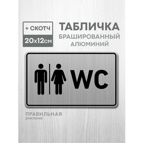 Табличка алюминиевая на туалет со скотчем, 20х12 см. 1 шт. / Табличка туалет, WC