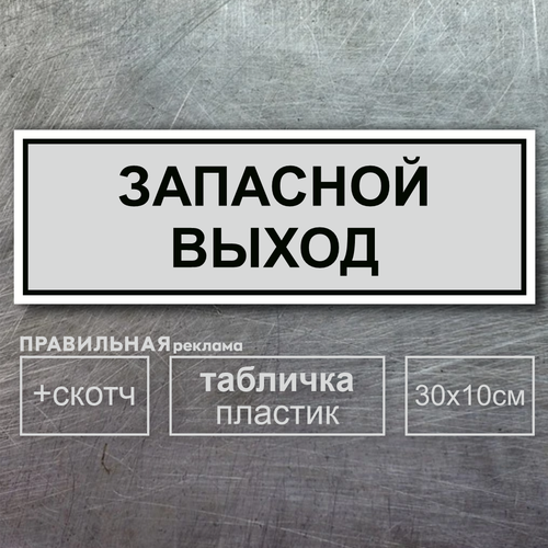 Табличка на дверь "Запасной Выход" 30х10см, серая + двусторонний скотч.