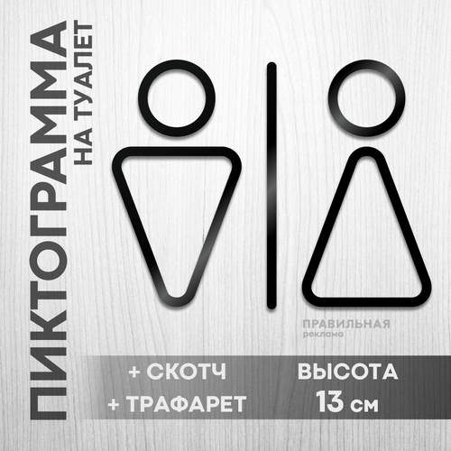 Табличка на туалет / Пиктограмма на туалет (черный акрил 3 мм. + скотч + трафарет). Минималистичная.