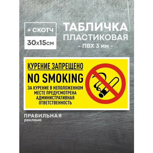 Табличка "Курение запрещено" / Табличка не курить, Размер 30х15см +скотч, 1 шт. Правильная реклама