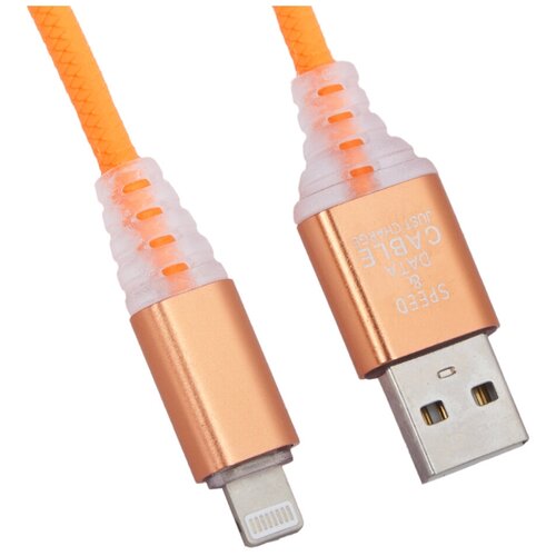 USB кабель "LP" для Apple Lightning 8-pin "Змея" LED TPE (оранжевый/блистер)