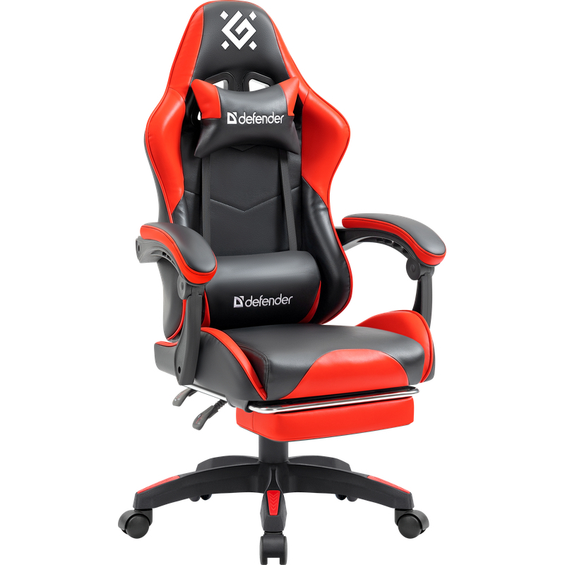 Кресло игровое Defender Tauros с подножкой, полиуретан, черно-красное