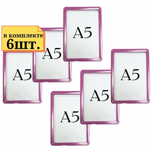 6шт Рамка А5 маджента с антибликовым протектором, Пластиковая рамка, Рамка для ценника, Ножки и крепление не идет в комплекте