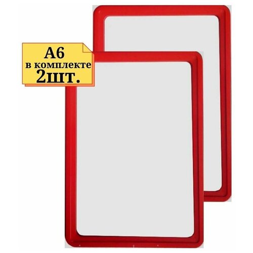 2шт Рамка А6 красная с антибликовым протектором, Пластиковая рамка, Рамка для ценника, Ножки и крепление не идет в комплекте. SD4-А6