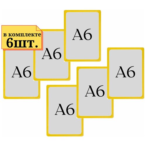 6шт Рамка А6 желтая с антибликовым протектором, Пластиковая рамка, Рамка для ценника, Ножки и крепление не идет в комплекте. SD4-А6