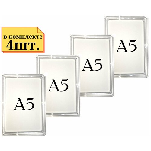 4шт Рамка А5 прозрачная с антибликовым протектором, Пластиковая рамка, Рамка для ценника, Ножки и крепление не идет в комплекте. SD4-А5