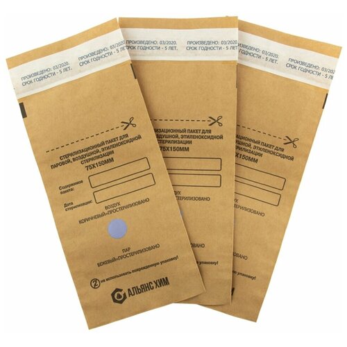 Альянс Хим, Пакеты для стерилизации инструментов 75x150 мм, из крафт-бумаги, 100 шт