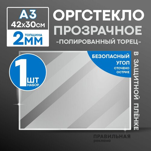 Оргстекло прозрачное А5, 3 мм. - 1 шт. (прозрачный край, защитная пленка с двух сторон) Правильная реклама