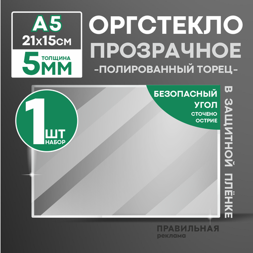 Оргстекло прозрачное А5, 5 мм. - 1 шт. (прозрачный край, защитная пленка с двух сторон) Правильная реклама