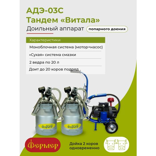 Доильный аппарат Фермер АДЭ-03ТС ПД Витала сухого типа (пульсатор попарного доения/ доение двух коров одновременно/ силиконовый вкладыш)