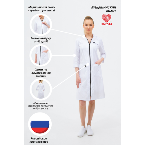 Цены на Халат медицинский LINESTA 205 сатори 0/136 размер 54/176 белый в г. Уфа