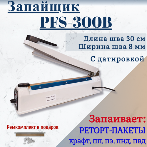 Запайщик пакетов ручной импульсный PFS-300B, 30см широкая запайка на 8мм