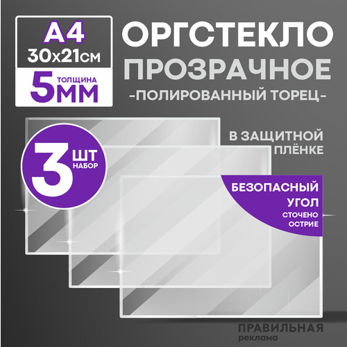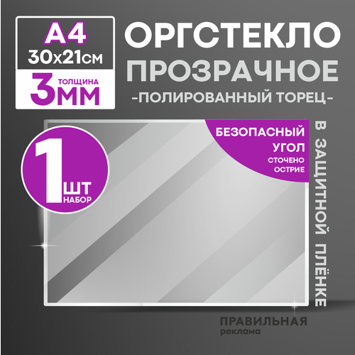 Оргстекло прозрачное А5, 3 мм. - 1 шт. (прозрачный край, защитная пленка с двух сторон) Правильная реклама