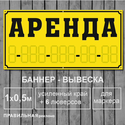 Баннер аренда / Вывеска "Аренда" 1х0,5 метра (усиленный периметр + 6 люверсов)