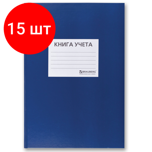Комплект 15 шт, Книга учета 96 л, клетка, твердая, бумвинил, блок офсет, наклейка, А4 (200х290 мм), BRAUBERG, 130140