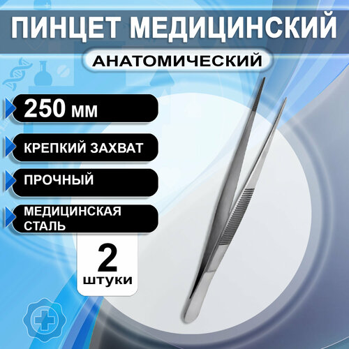 Пинцет медицинский хирургический прямой анатомический 250мм, 2 штуки