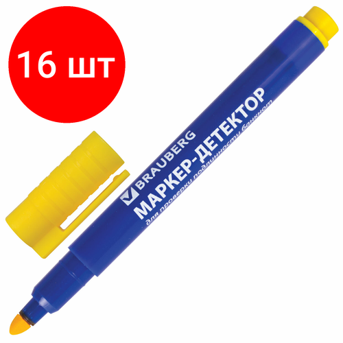 Комплект 16 шт, Маркер-детектор для проверки подлинности банкнот, BRAUBERG, блистер, 151245