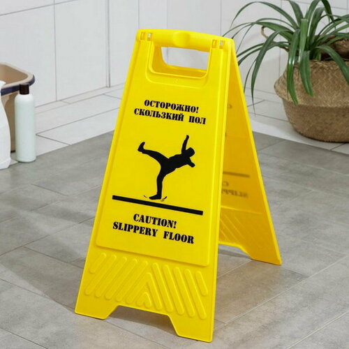 Знак "Осторожно! Скользкий пол", 61x30 см, пластик, цвет жёлтый